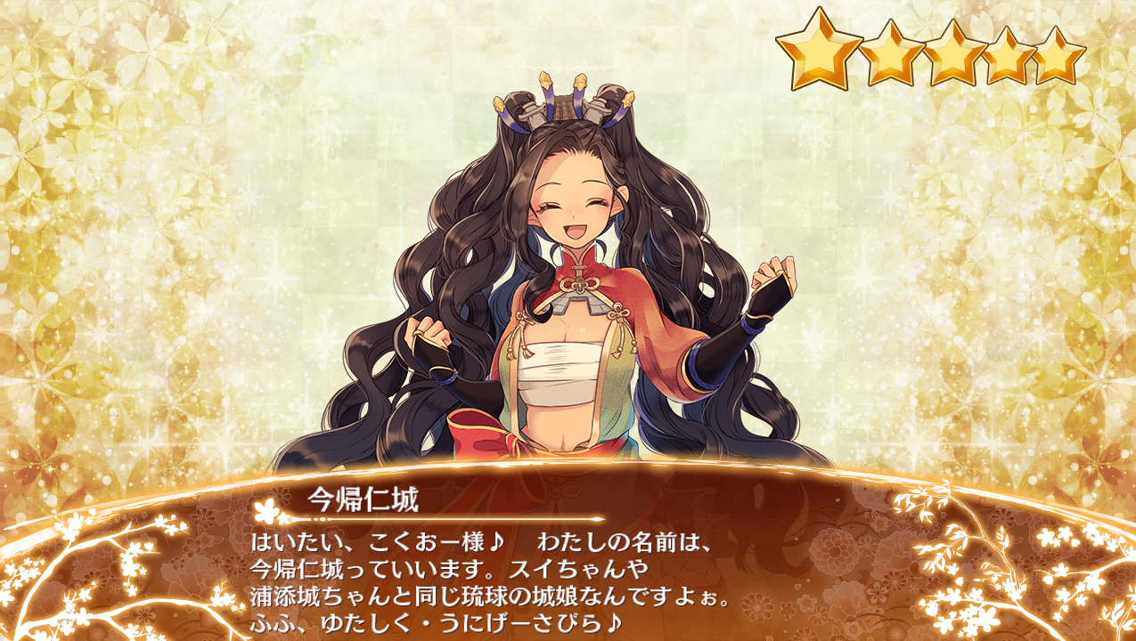 城娘ステータス: 全城娘一覧(刀 | 槍 | 槌 | 盾 | 拳 | 鎌 | 戦棍 | 双剣 | ランス | 弓 | 石弓 | 鉄砲 | 大砲 | 歌舞 | 法術 | 鈴 | 杖 | 祓串 | 本 | 投剣 | 鞭 | 陣貝 | 軍船 | 茶器 | その他 || 平属性 | 平山属性 | 山属性 | 水属性 | 地獄属性 | 無属性)初期ステータス 装備品: 刀 | 槍 | 槌 | 盾 | 拳 | 鎌 | 戦棍 | 双剣 | ランス | 弓 | 石弓 | 鉄砲 | 大砲 | 歌舞 | 法術 | 鈴 | 杖 | 祓串 | 本 | 投剣 | 鞭 | 陣貝 | 軍船 | 茶器 | その他 || 施設 || 消耗品 | 城娘: 特技(攻撃系 / 防御系 / 弱体化他) | 所持特技 | 編成特技 | 大破特技 | 特殊攻撃 | 特殊能力 | 武器切替 | 計略(伏兵以外 / 伏兵) | 都道府県別 | 令制国別 | 季節限定城娘 | 特定カテゴリ |