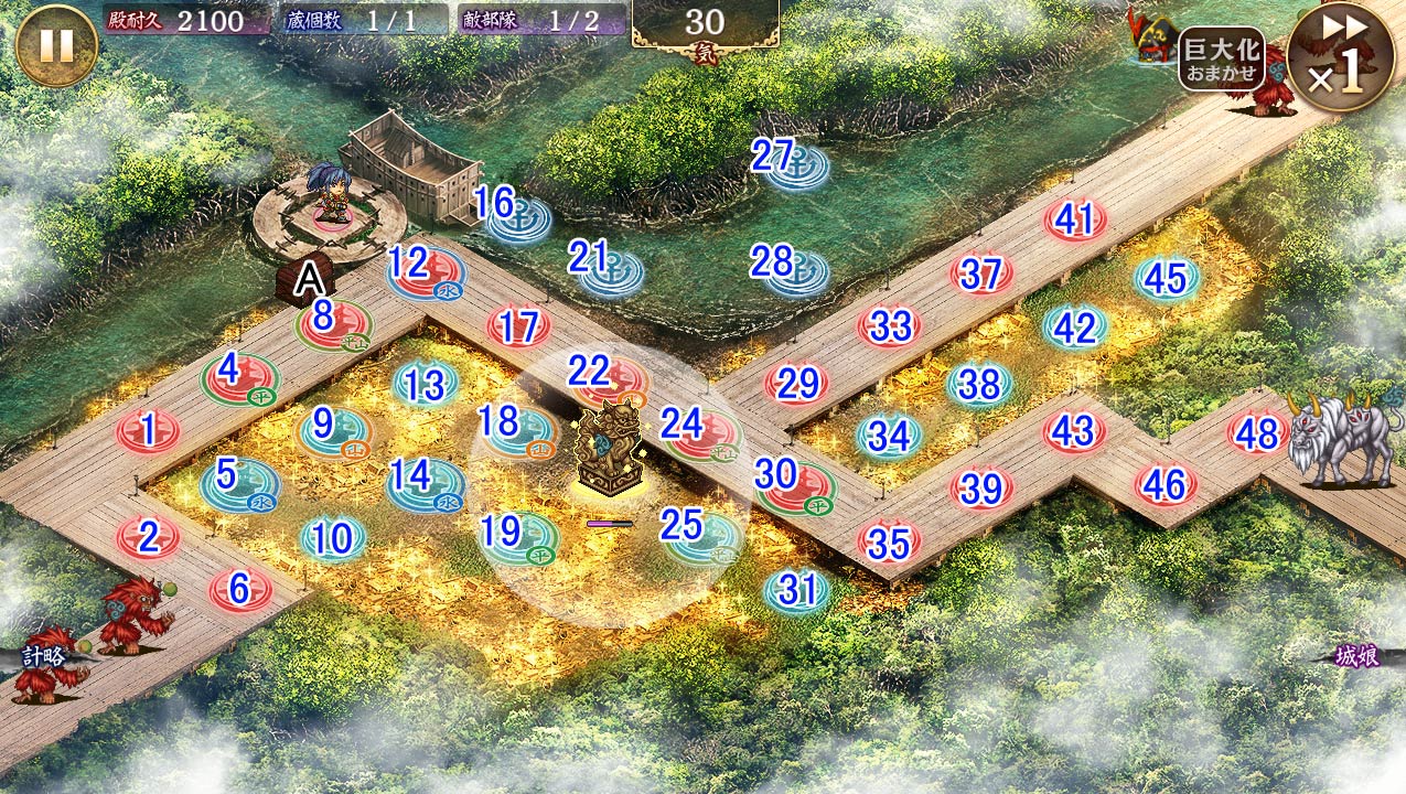 | シーサー像:射程内の沖縄城娘が強化 平、平山、山、水の属性強化マスが配置 |