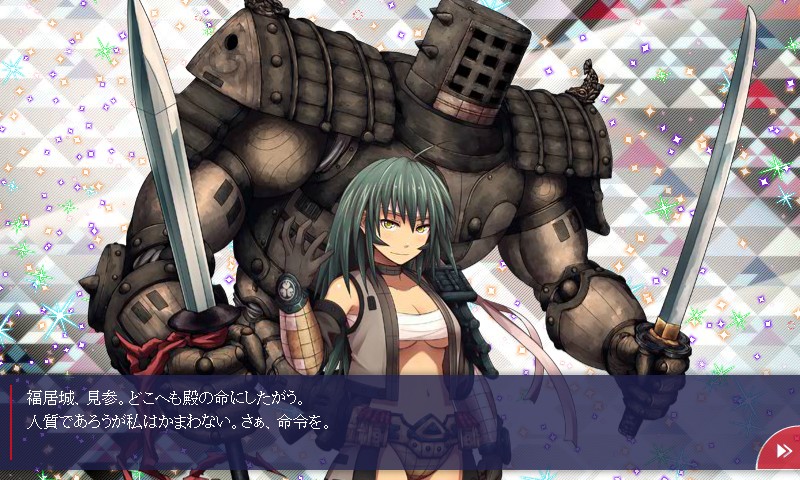 | 北ノ庄城って名前だったのを「北」は敗北の字だから不吉ってことで生まれ変わったのが私、福居城だ。 天下普請で皆に協力してもらったのでとてもすばらしい御城となった。 ははっ、わかっている、火の用心だな。 | ||||