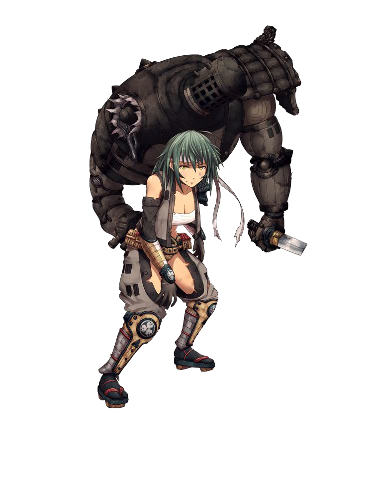 城娘は通常時、御嬢(おじょう)と呼ばれる人間大サイズの女の子であり、巨大化し城娘となる。 |