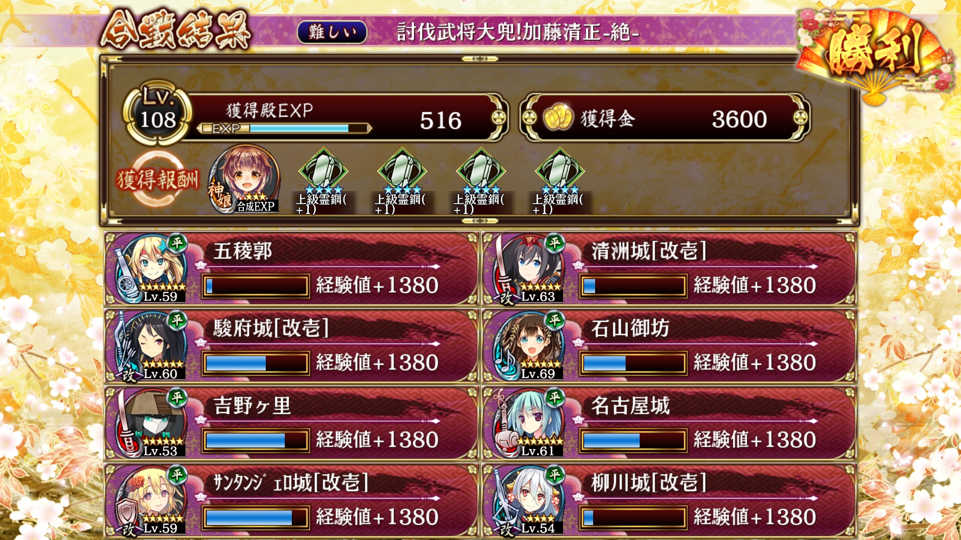 緊急出兵:討伐武将大兜!加藤清正 | E-1 | E-2 | 絶 |