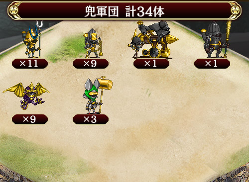 1石弓、2刀(耐久高め)、3鉄砲、4槌、5法術、6槍あとは適当に配置。