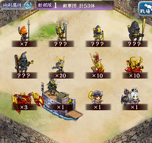 緊急出兵:選ばれし城娘と秘伝武具 捌の陣 | E-1 | E-2 | E-3 | E-4 | 絶壱 | E-5 | E-6 | E-7 | E-8 | 絶弐 |