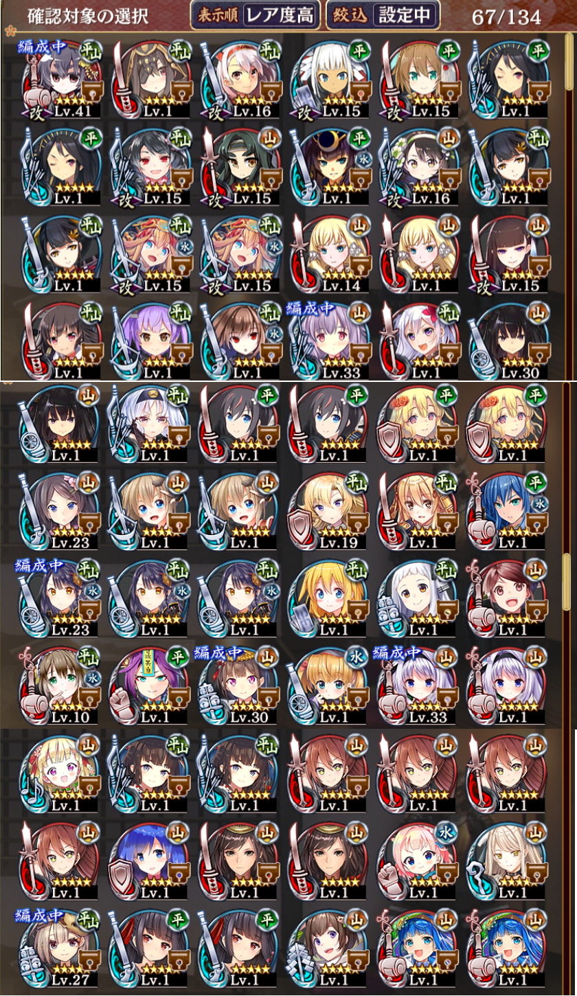 • しまってある星6以上のダブリと今回でそろえた星4(全員限突4後のススキ化)改です。 -- 2019-10-13 (日) 00:30:16