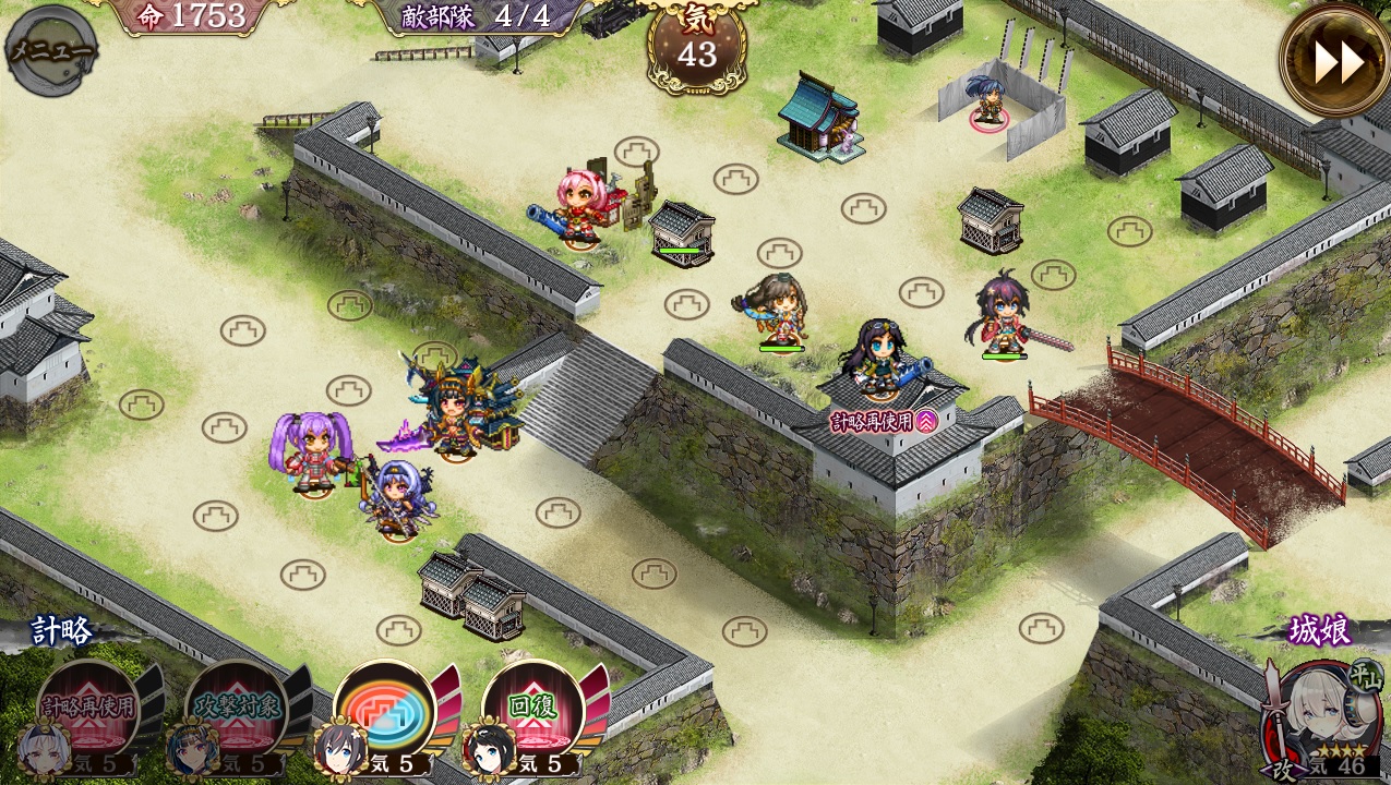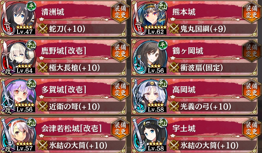 様々な方向から兜が進行してくるため、如何に戦力を分散させるかそして巨大化していくかが重要。特に終盤ラッシュ中に走ってくる騎馬兜は非常に厄介。できれば足止め持ちの近接を設置したい。
