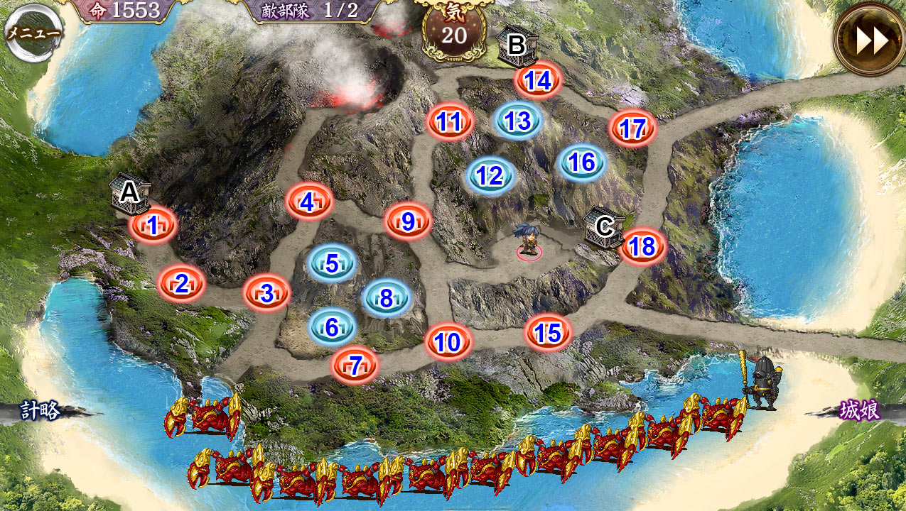 緊急出兵:討伐武将大兜!島津義弘 | E-1 | E-2 | 絶 |