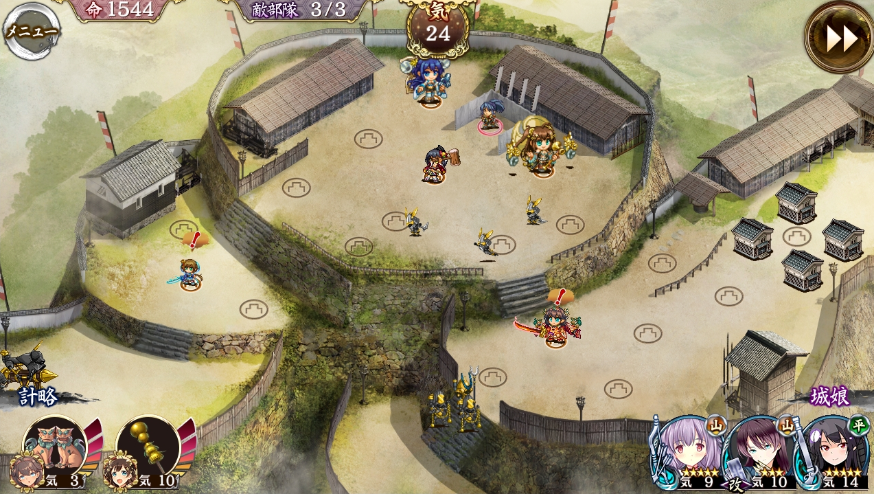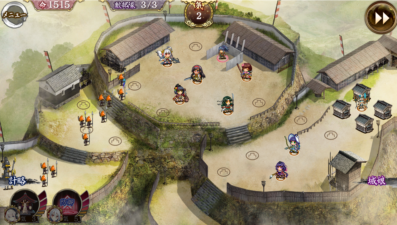(gif作成)①.城娘つまみ時は巨大化アイコンが表示されない。②.つまみ時の城娘は行動モーション4フレームのうち1枚のまま静止している。③.城娘の配置→撤退を挟むことで、つまみ時のフレームが変わる。どのフレームになるかの条件は未確認。 --