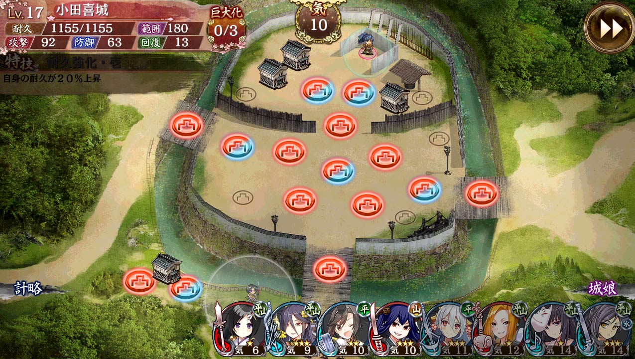 • 槍オンリー編成で行ってみたら難なくクリアできた。中央を槍で固めると敵が瞬く間に串刺しになっていくw -- 2016-04-15 (金) 23:26:49