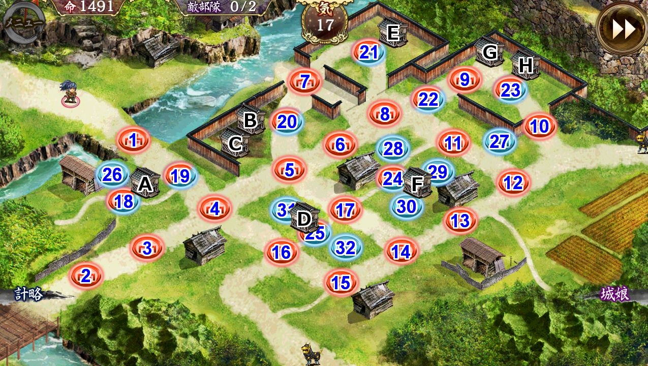 復刻イベの感想。中央一番下の蔵左上の青マスに光義装備の深志置いて最大化したら特技効果がギリギリ一番左の蔵まで届くね。特別戦功の遠隔縛りで全蔵を達成する場合かなり楽になる。 --