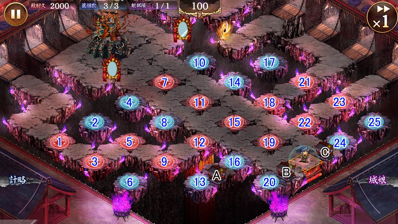 | <無間地獄効果> 無間地獄では『特定の敵』を倒すまで一部の敵が無限に登場します。 この合戦では『閻魔大王』と『浄玻璃鏡』が特定の敵になります。 |