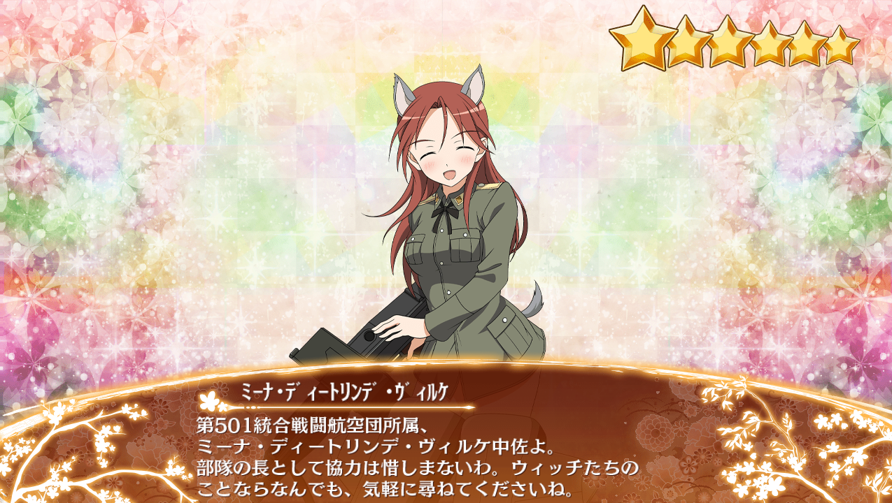バルクホルン、ハルトマンとは501JFW設立前からの戦友でプライベートでは愛称で呼ぶなど仲が良い