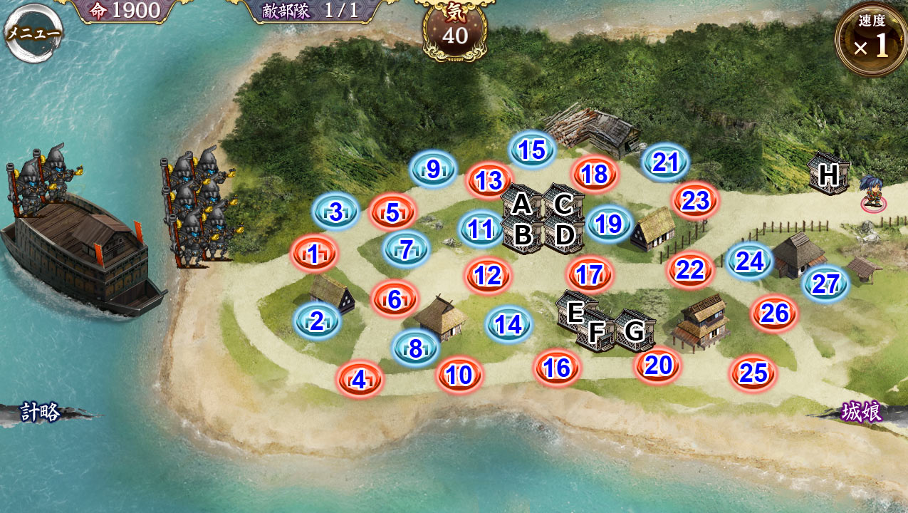 猛難は平山のレベルあげ編成のうちで強い城ばかり選んでなんとか攻略した。猛シリーズはこれくらいの縛りでやると面白いなあ。裏小牧、ダノター、鷹、浜松、高遠、玉縄、白河小峰、臼杵。高遠だけ配置的に活躍できなかったが、あとは活躍したと思う。裏小牧の計略に空白があるのでそこをやりくりするのが問題だった。彦根いたらずっと計略で攻略できたろうから、彦根と裏小牧がいるだけでもクリアは難しくないと思う。 --