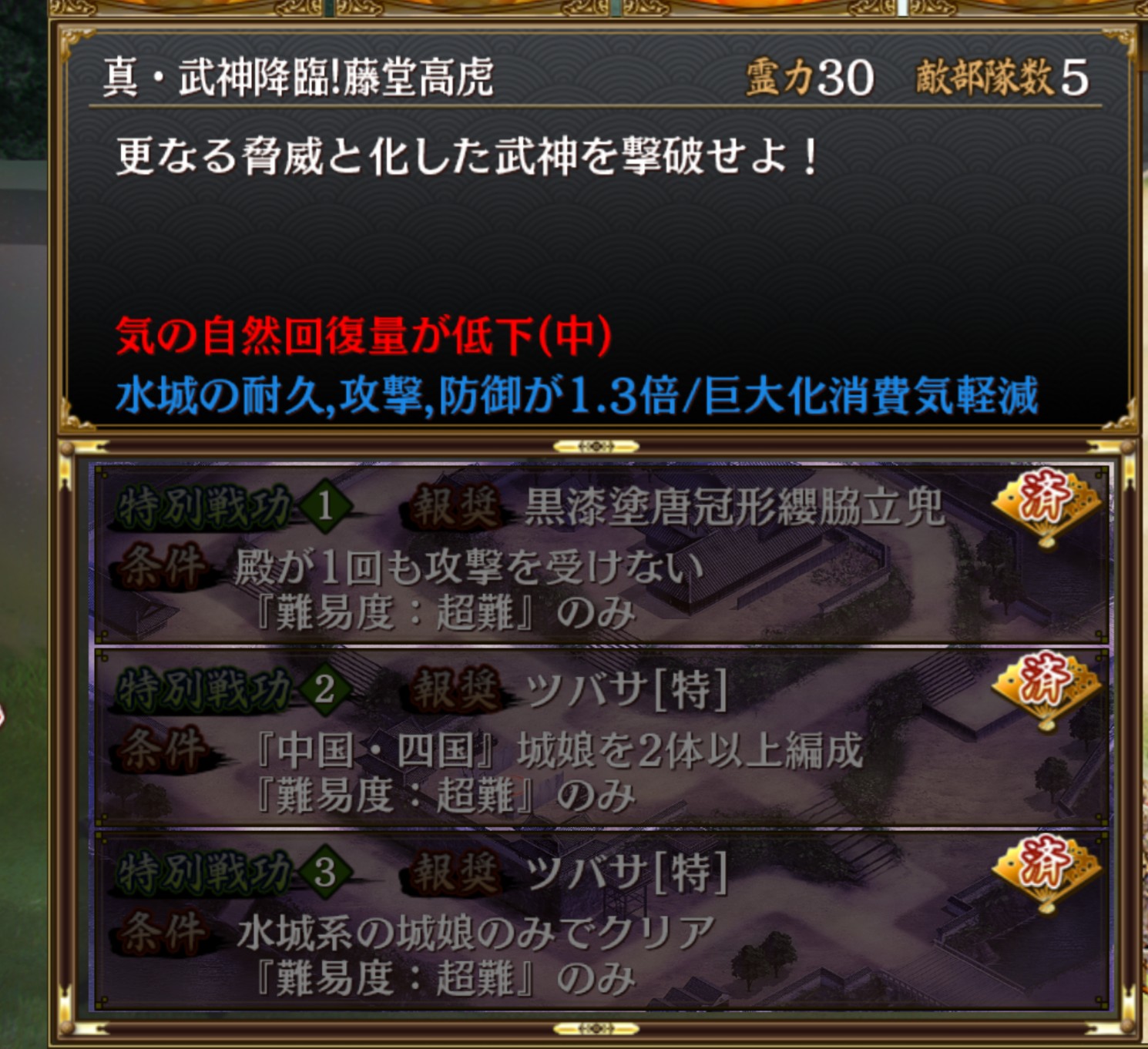 (臼杵のみ転戦14→13)初めて武神超難を星6改以下でクリア出来た。三戦功満たせたクリアだからめちゃくちゃ嬉しい --