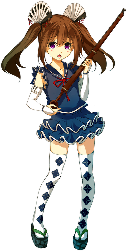 水着のような格好(旧城プロではよりスクール水着に近かった)をしているのは、利根川の氾濫により本丸・二の丸が破壊されたため。