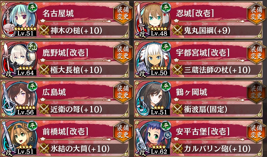殿レベル同じくらいだけどこの顔ぶれで結難完全クリアはすごい、動画を見たいわ。自分は名古屋城におんぶに抱っこ&気トークン2体入りだった。 --