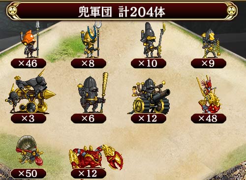 • 平均15ぐらいだと厳しくなるけど23ならいける。左側は槌より刀を並べて、2人同時に殴れる状態を作るといい。殿の左に歌舞、殿の下に鉄砲を置いて、左側に近接3体、あとは弩と近接で右側をフォロー。 -- 2016-08-13 (土) 17:12:43
