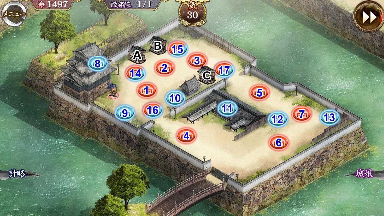 猛難は平山のレベルあげ編成のうちで強い城ばかり選んでなんとか攻略した。猛シリーズはこれくらいの縛りでやると面白いなあ。裏小牧、ダノター、鷹、浜松、高遠、玉縄、白河小峰、臼杵。高遠だけ配置的に活躍できなかったが、あとは活躍したと思う。裏小牧の計略に空白があるのでそこをやりくりするのが問題だった。彦根いたらずっと計略で攻略できたろうから、彦根と裏小牧がいるだけでもクリアは難しくないと思う。 --