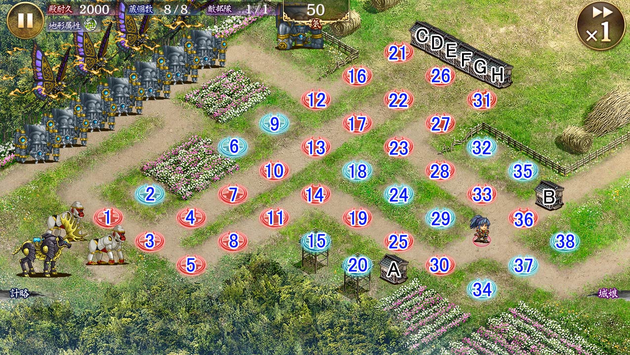 22に鷹城改おいて最大化させれば一の谷も初期配置の強化一の谷も片付けてくれる。左からくるのは14に置いたノッティンガムと18の裏小牧山が片付けてくれる。あとはシャンテイと甲府の計略で飛行敵は焼く。金亀を15においてうち漏らしを片付けてもらう。予想以上にノッティンガムがよく働いてくれた。 --