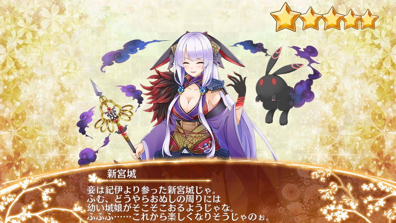| 1 | 604 | 250 | 0 | 27 | 0 | 丹鶴姫の手招き 範囲内の敵の速度が50%低下 |