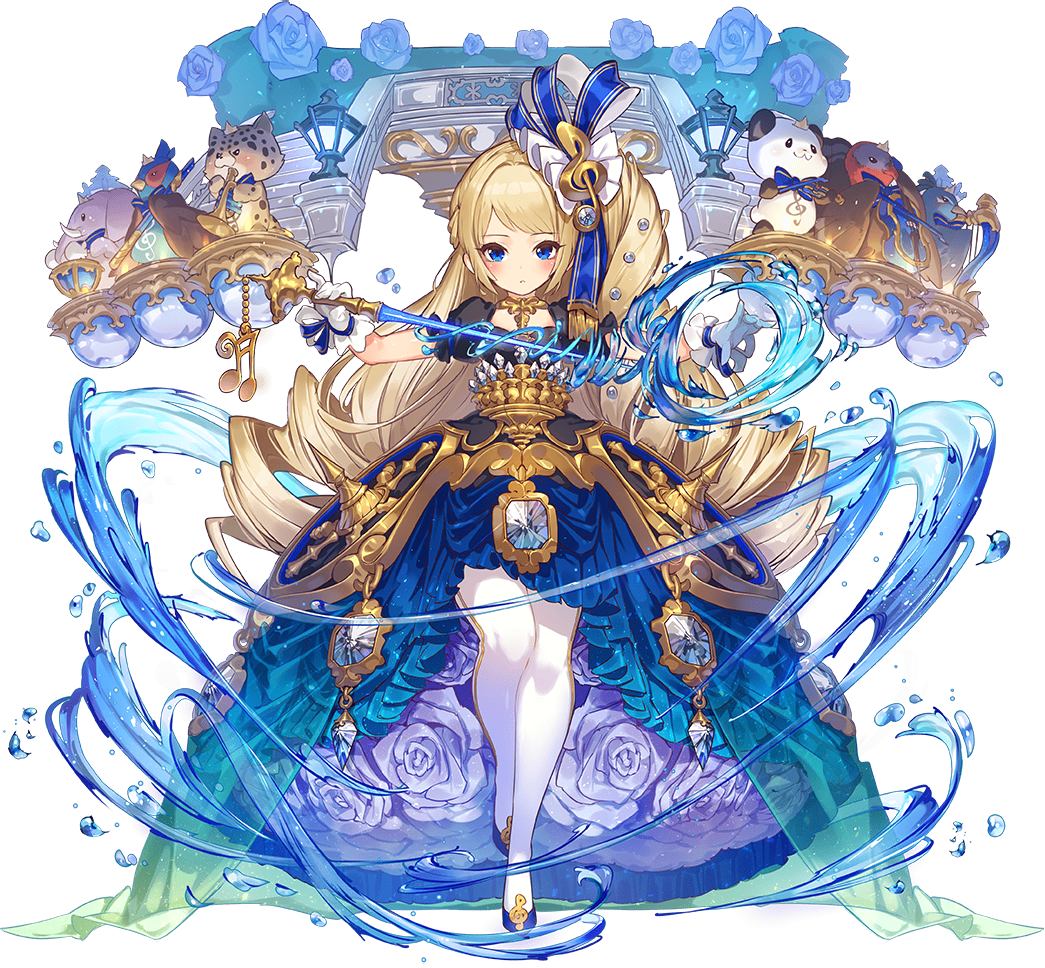 また御嬢姿のモチーフについては、全身白のドレスはウィーンのバル(舞踏会)ではデビュタント(社交界デビューする人)以外は着用不可であり、御嬢姿の青と白を基調とした衣装は、王宮博物館に所蔵の「三種の神器(王冠、宝珠、儀仗)の装飾がダイヤモンドとサファイヤによることから。