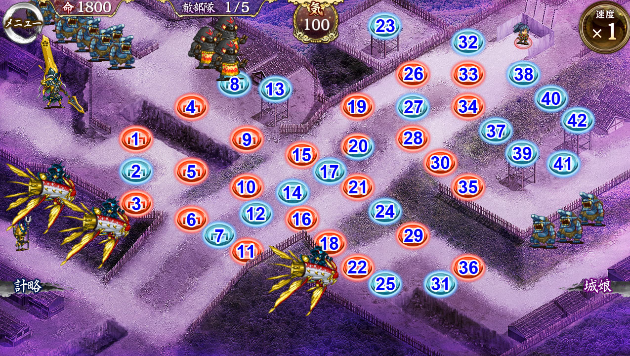 | 武神特技『槍の又左衛門』 全ての敵が受ける遠隔攻撃のダメージを50%軽減し、 全ての敵の攻撃力が50%上昇 |