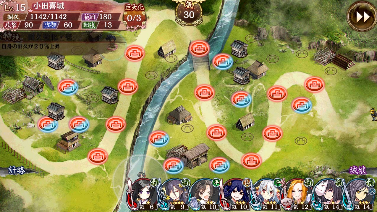 配置が的確なら出撃枠が余るので、育成したい低レベル城娘を連れて行くのもいいかもしれない。