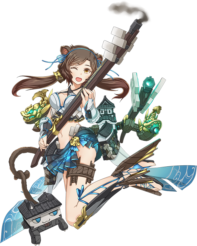 今浜城では猿面だけだった猿要素が、長浜城では耳と尻尾が生えて全身が猿っぽくなり「うきゃっ」とも喋るようになった。