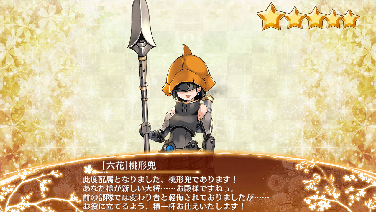 作戦が失敗し柳川城の矢で射抜かれかけるも古河城に助けられた。古河城は殿と戦い大破して共に敗走、傷を桃形兜に手当された