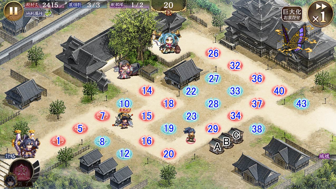 | 今回の合戦の難易度「普通」では、『[幼き]熊本城』がお助け城娘として登場しています。 再配置や撤退を行うこはできませんが、巨大化と計略を駆使して勝利を目指しましょう。 |
