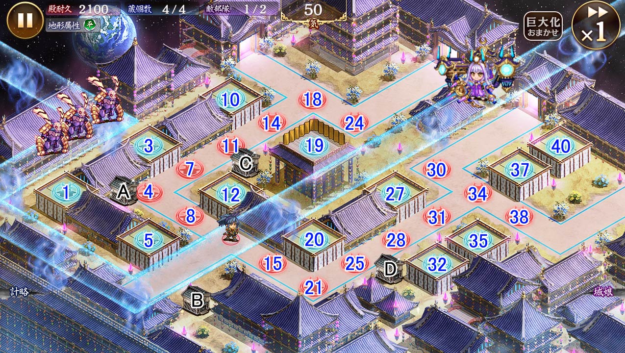 | 今回の合戦では以下の戦場効果が発動しています。 無重力効果:敵軍ユニットの移動速度を10%低下、耐久が10%上昇。 |