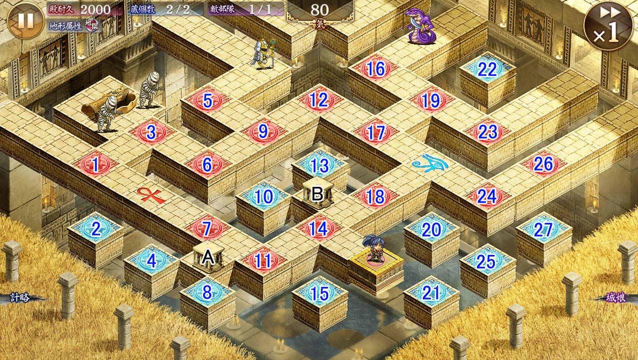 | <戦場効果> 火属性のダメージ計略が弱点の敵が出現 アンク/ウジャトに到達した敵が強化 |