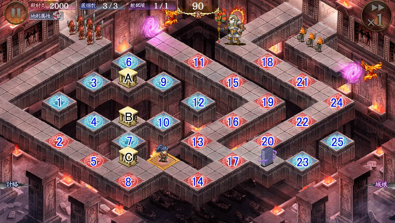 | <戦場効果> 石板が破壊されると城娘に弱体効果が発生 弱体効果:全ての城娘の攻撃、防御が半減 |