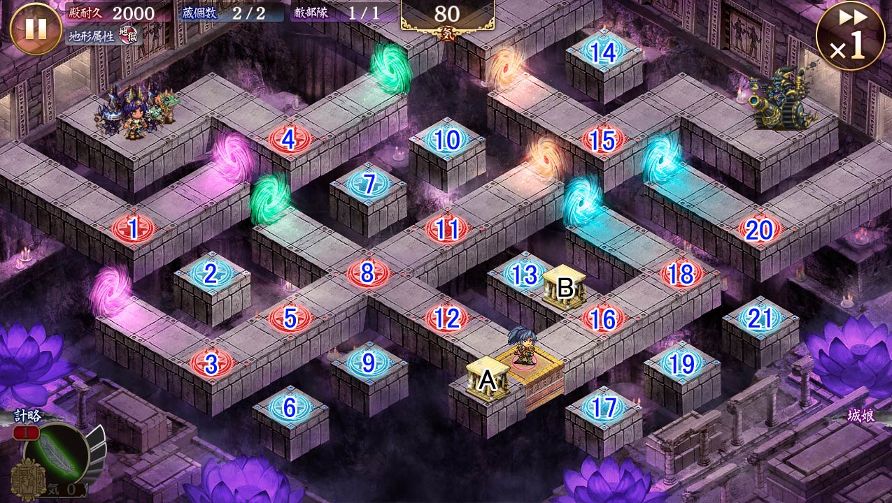 | 3 | 地形不適合(地獄) | 地獄城以外の城娘の攻撃が50%低下、攻撃の上昇効果無効 |