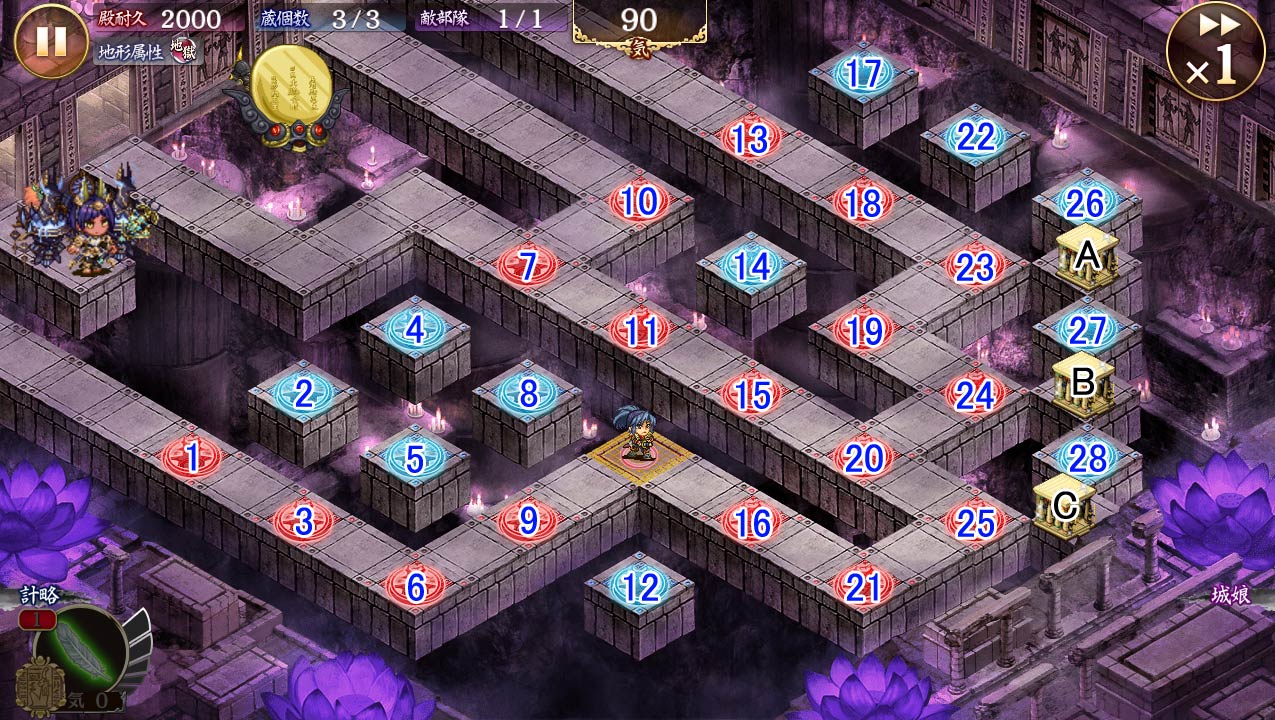 | 3 | 地形不適合(地獄) | 地獄城以外の城娘の攻撃が50%低下、攻撃の上昇効果無効 |