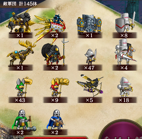 • 15審。早い段階で、14に津山(鎚)などを配置して3回巨大化でボウガンに届く、越前大野の隠密計略を使い一方的に殴り倒しておくと楽になる。19でも同様に射程アップ計略が必要ではあるがハンマーを倒しておく。これで残りの問題は騎馬だけだ。 -- 2022-04-28 (木) 10:13:31