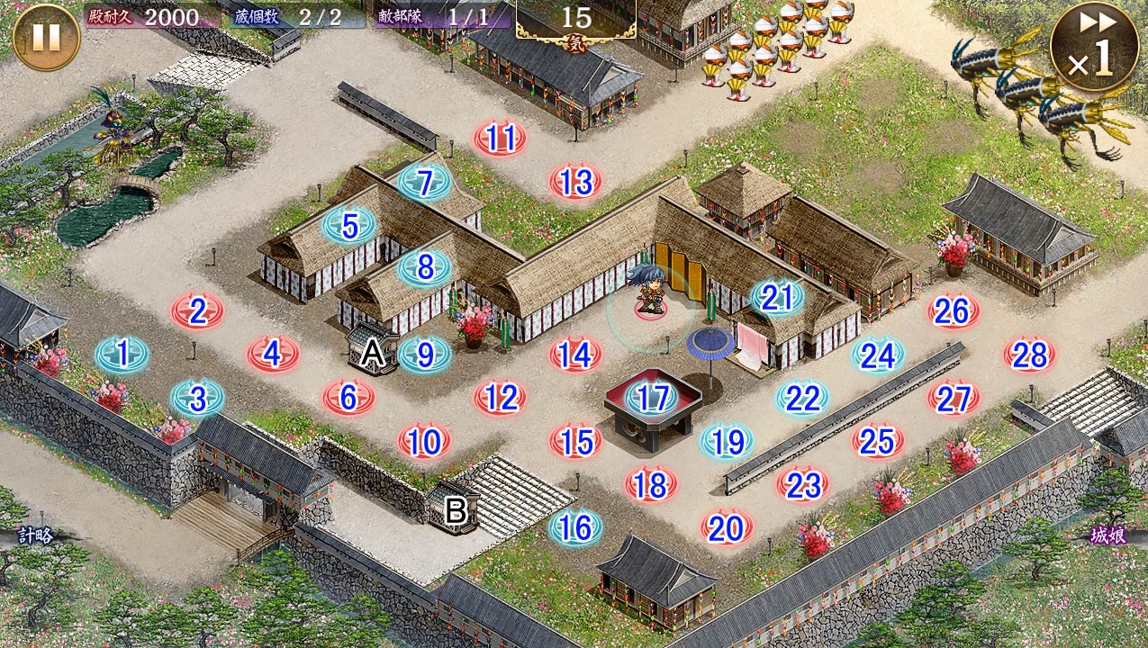 白無垢は、どんなルートで接近してきても、最終的に12、14を通るので、ここで集中砲火。星形はAの下を回ってくるので、デコイや対空はそれに合わせて。21元就弓がなにげに便利だった。 --