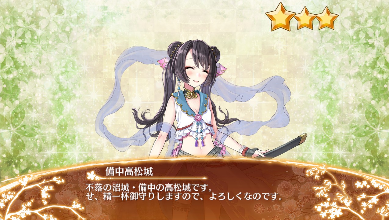 2017年2月14日~2月28日開催のイベント「謀略と猛勇の挟撃」の特殊築城により複数入手も更に容易になった。
