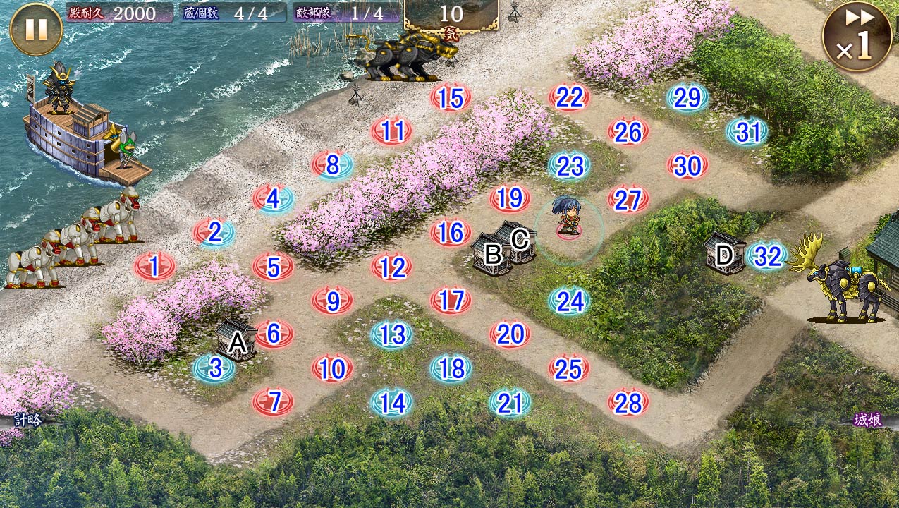 | 兜丸は射程内の敵軍ユニットの攻撃を30%上昇し、 自身が受ける武器攻撃によるダメージを90%軽減します。 また、兜丸は氷結を除く全ての状態異常、後退効果、移動速度低下効果を無効化します。 |
