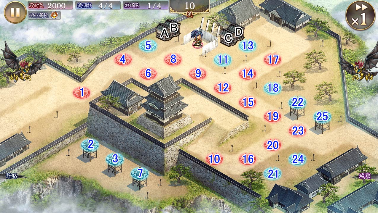 | <戦場効果「天空の城」について> 今回の合戦では飛行兜の攻撃速度が30%上昇、攻撃後の隙が30%短縮します。 また、殿側ユニットは攻撃速度が30%低下、攻撃後の隙が30%延長します。 |