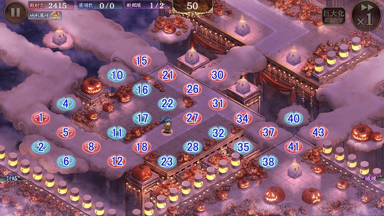 | 今回の合戦では以下の戦場効果が発動しています。 仮装大賞:[仮装]兜の攻撃が20%上昇。 |