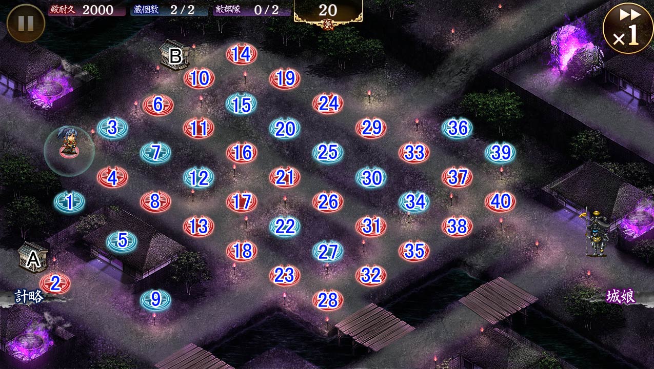 | <煙々羅の補足> 煙々羅は残り耐久が0になると怒り状態で復活し、攻撃方法が以下に変化します。 残り耐久が0になるか、配置された城娘や伏兵、蔵に接触すると爆発します。 <煙々羅の自爆効果について> 爆風を受けた対象はステータス異常:暗闇が付与され、一定時間歌舞、祓串の回復対象になりません。また、爆風を受けた歌舞、祓串は回復行動を行わなくなります。 |