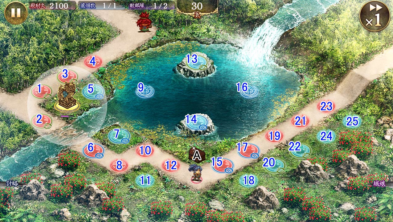 | シーサー像は一定の条件が満たされると状態が変化して 味方や敵に有利な効果を発揮します。 像の射程内に殿側ユニットが3体以上いる時、『味方有利状態』に変化します。 『味方有利状態』のときはシーサー像が青く光ります。 『味方有利状態』の効果:全ての殿側城娘の計略の消費気と、被ダメージを半減 ただし、シーサー像の射程内に敵が侵入すると、 『中立状態』もしくは『敵有利状態』へと変化します。 『中立状態』の効果:敵味方への有利効果は発動してません。 像の射程内に殿側ユニットが3体未満で、敵が侵入すると『敵有利状態』に変化します。 『敵有利状態』のときは赤くシーサー像が光ります。 『敵有利状態』の効果:殿側城娘の消費気が2倍、敵軍の被ダメージを半減 |