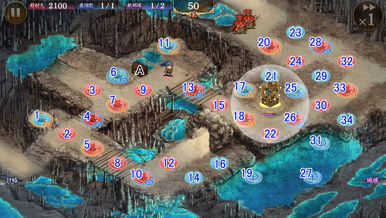 | シーサー像:射程内の沖縄城娘が強化 山、水の属性強化マスが配置 |