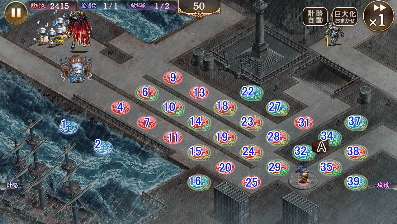 ![]() ナポレオン・バナパルトは防御形態と攻撃形態でそれぞれ以下の特技を発動しています。 防御形態:自身の被ダメージ、状態異常、後退効果を無効 全ての敵軍ユニットの防御を25%上昇、殿に向って進行せず攻撃を行いません。 一定時間経過後、攻撃形態に変身して進行を開始します。 攻撃形態:射程内の対象1体に3連続で刃を飛ばして攻撃 射程内の敵軍ユニット1体につき、射程が5%上昇(上限50%) 射程内の敵軍の攻撃を50%上昇、攻撃後の隙を10%短縮 |