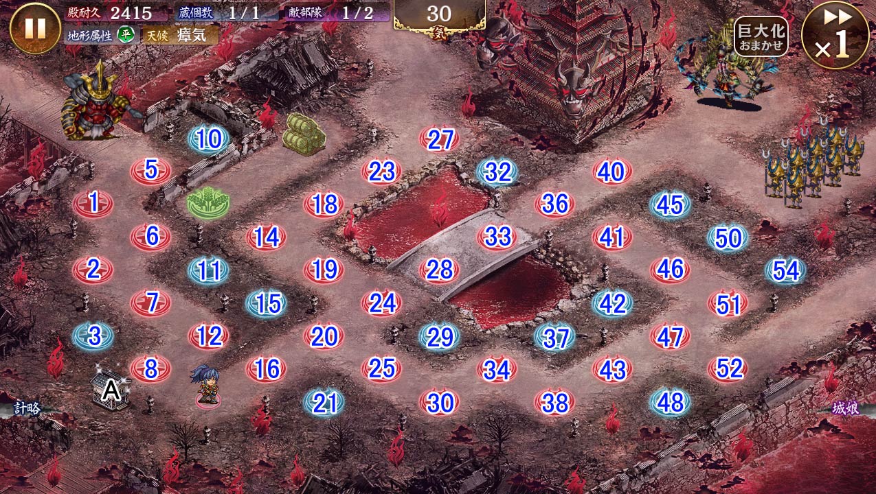 | 今回の合戦では以下の天候効果が発生しています。 瘴気:敵の与ダメージと城娘の被ダメージが50%上昇。  |