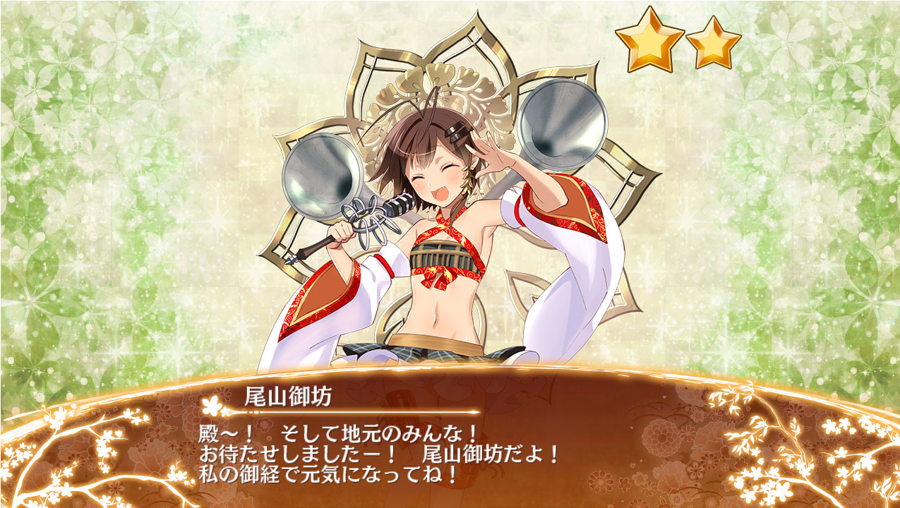 防御面を補強出来る★3以上の歌舞使いは石山御坊の他には居ない為、歌舞が必要+耐久面を重視したいステージでより活躍が見込める様に。