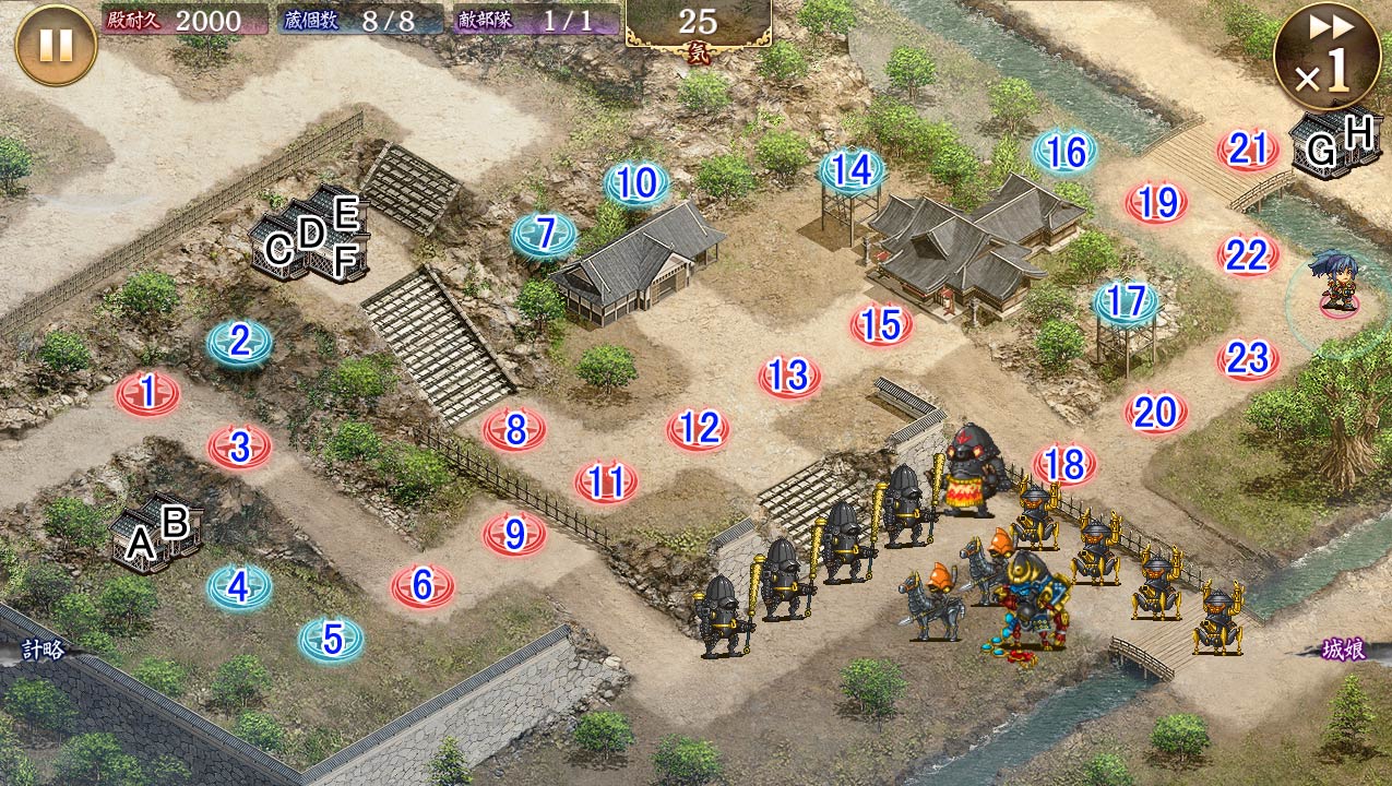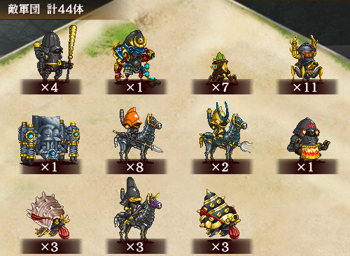 。盛岡は力士処理後に配置、鎖兜は鹿野で動く前に処理。貝は杖で消毒、ラストの鉄砲騎馬の攻撃は計略や巨大化回復でやり過ごせばおk。 --