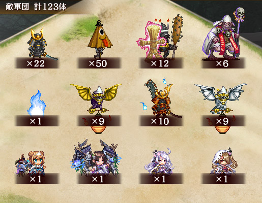 | 今回の合戦では、特殊効果により次の効果が発動しています。 特殊効果『霊湯の効能』 全ての敵城娘の回復が250上昇。 |