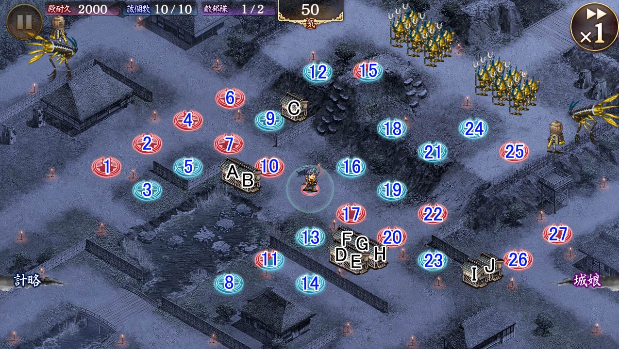 | A,B,?,D,E,F,G,H | 築城アイテム | [築城アイテム] 17~19個 / 合計136~152個 |