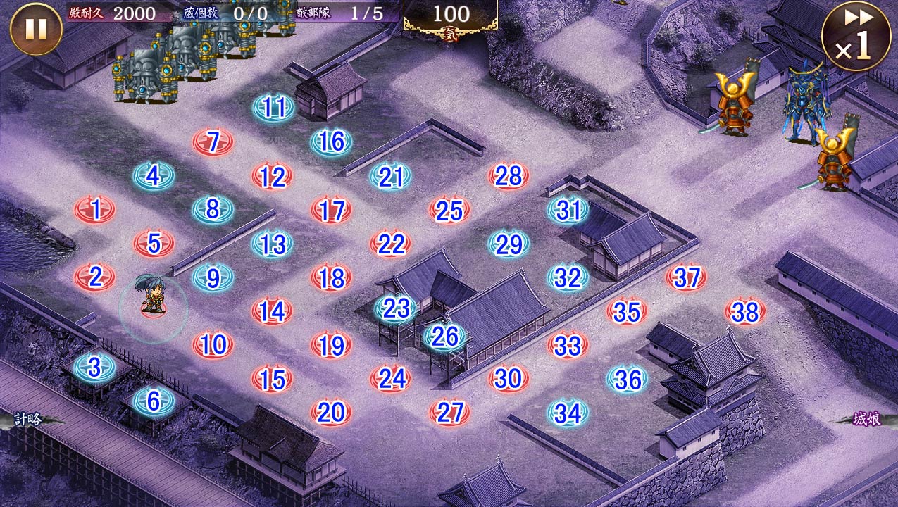 | 鉄線前立形兜は一部の兜のみを対象に、回復を50上昇させます。 また、攻撃を行う代わりに範囲内の敵を回復します。 ※今回対象の兜:火焔形兜、一ノ谷形兜、香炉形兜、鉄線前立形兜 |